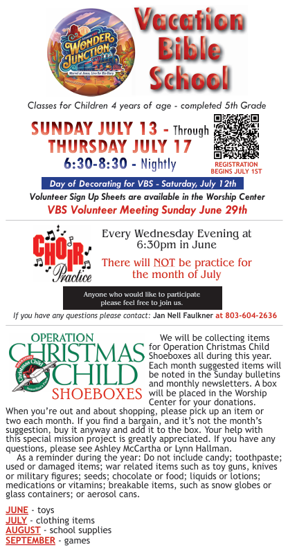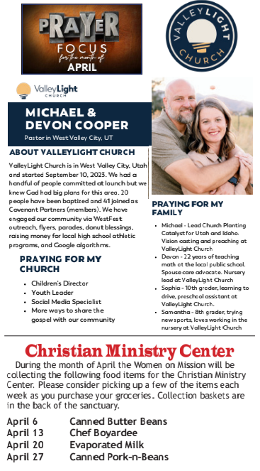 Adult Bible Study & Prayer Meeting: 6:00pm